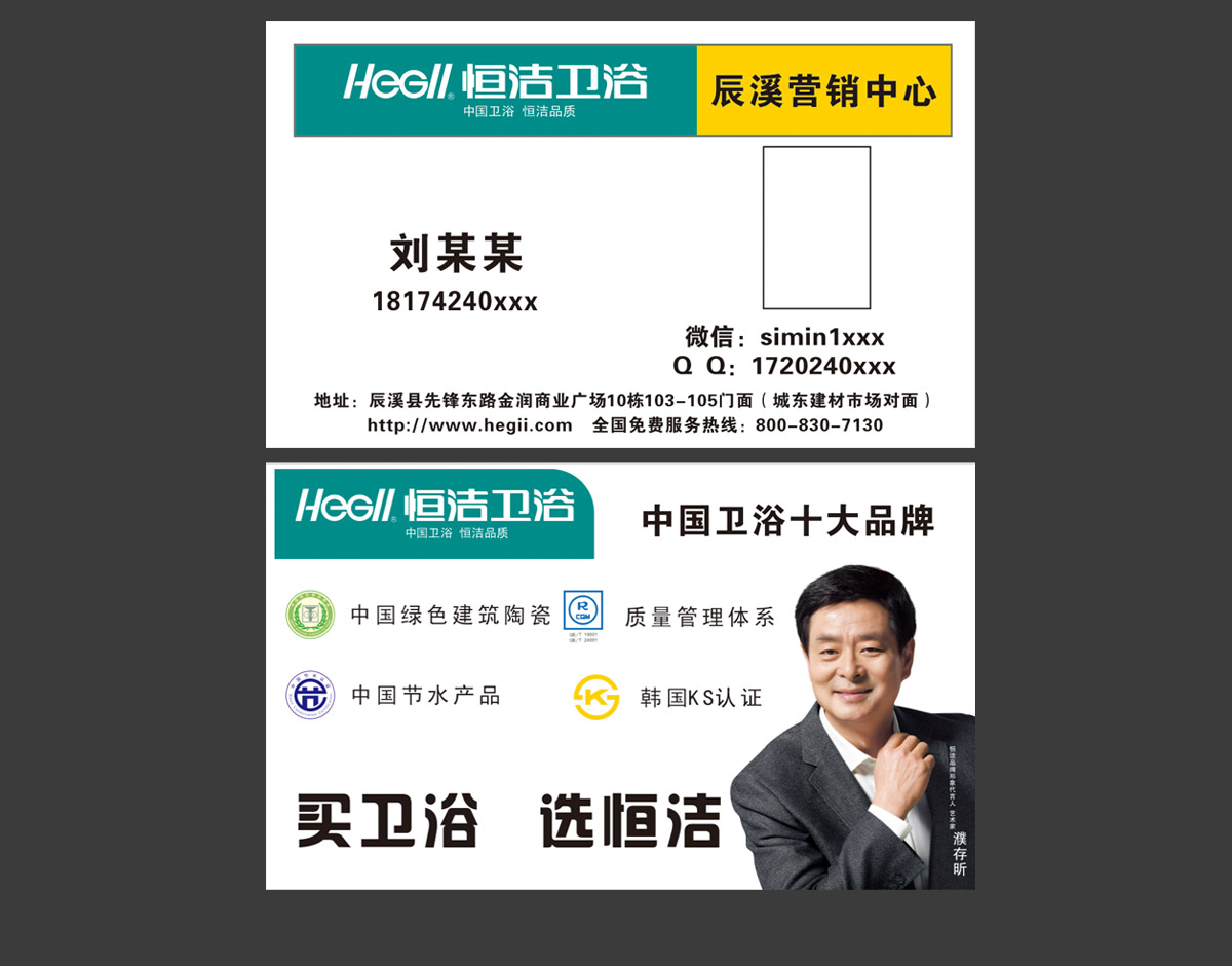恒洁卫浴名片